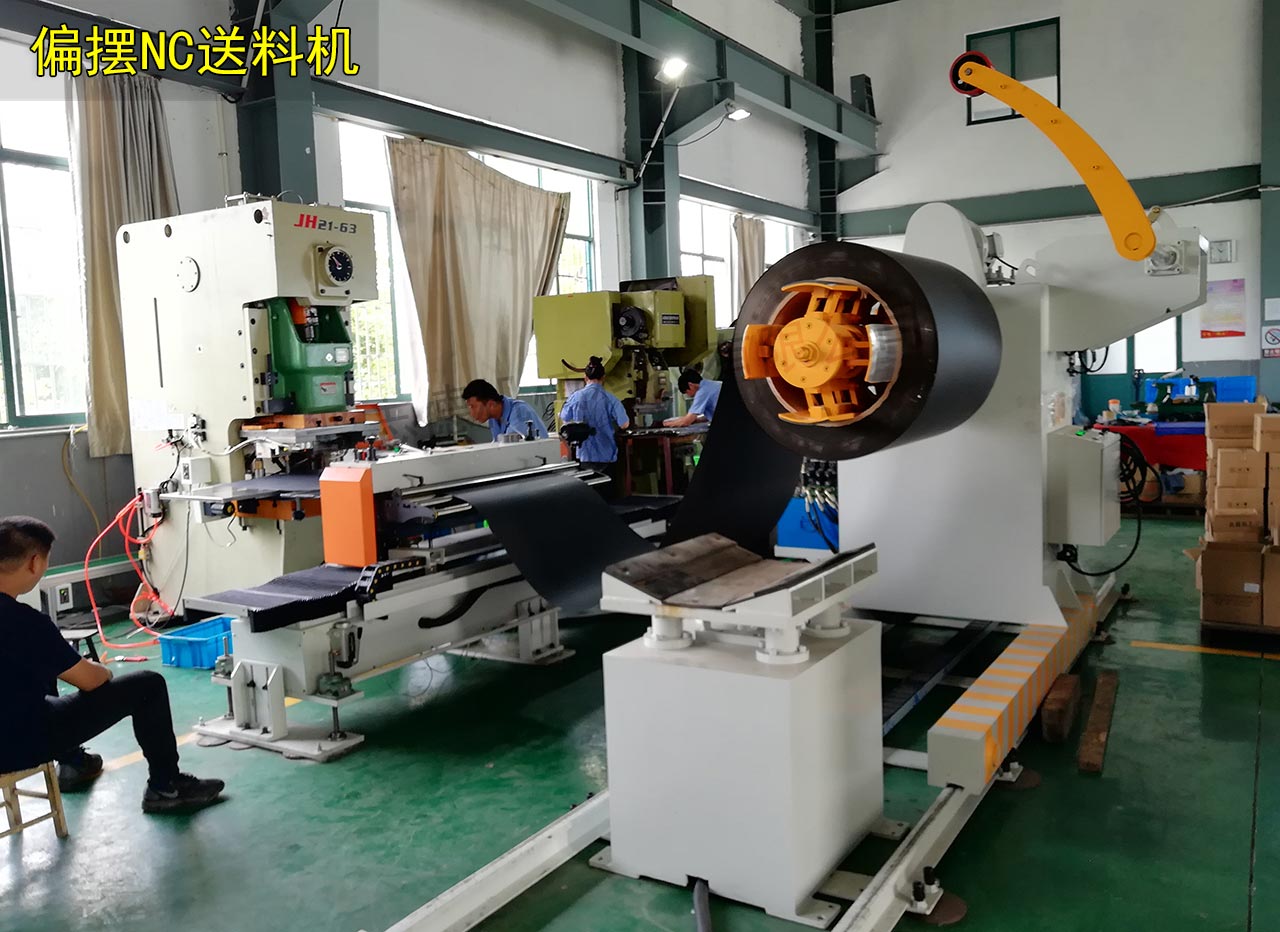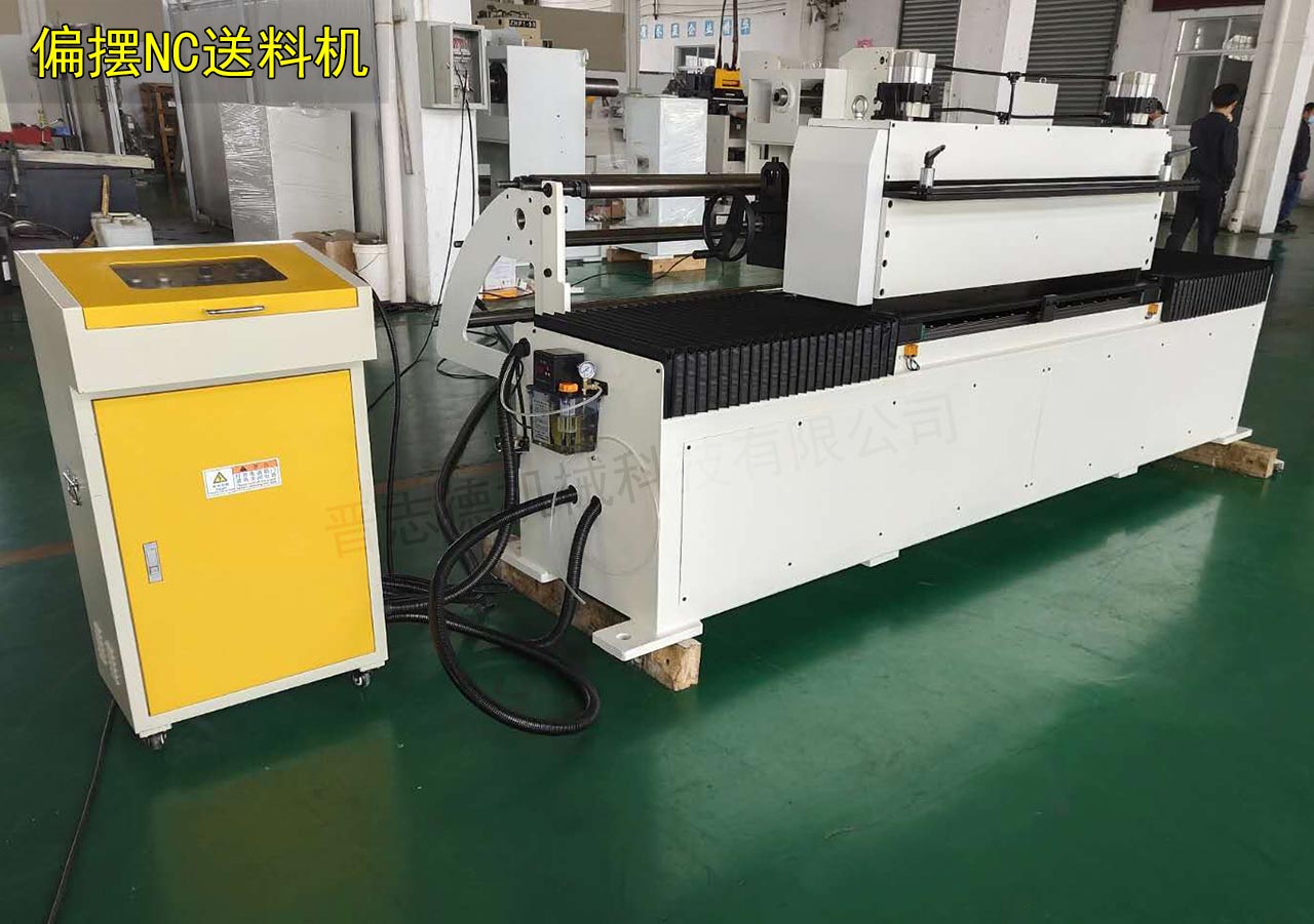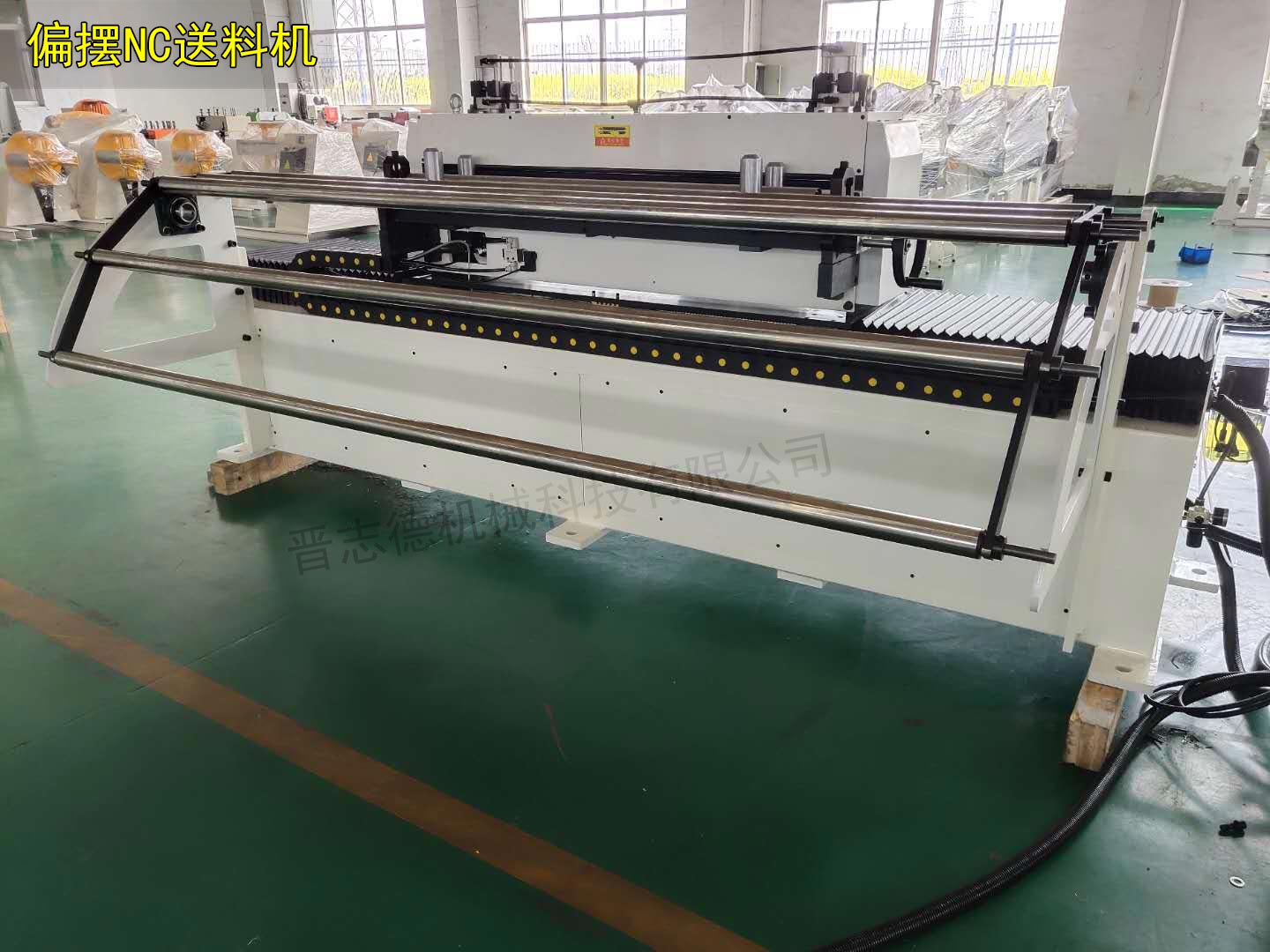 偏擺NC送料機屬專用型送料設備,是晉志德機械專為圓片下料客戶量身打造的送料設備,其相比標準型NC送料機,增加了由伺服馬達控制的左右移動工作機架,通過偏擺移位來調整沖壓圓片的位置,可根據圓片下料直徑,進行多次移位,確保圓圓互切式下料,提高材料的利用率,具有高產出、高效率、高精度、能耗低、全自動化控制等優勢,若材料平整度不夠,還可以配晉志德機械生產的整平機,整平工作輥可將材料弧度加以矯正,讓材料可以順利通過模具,并保證圓片平面度。