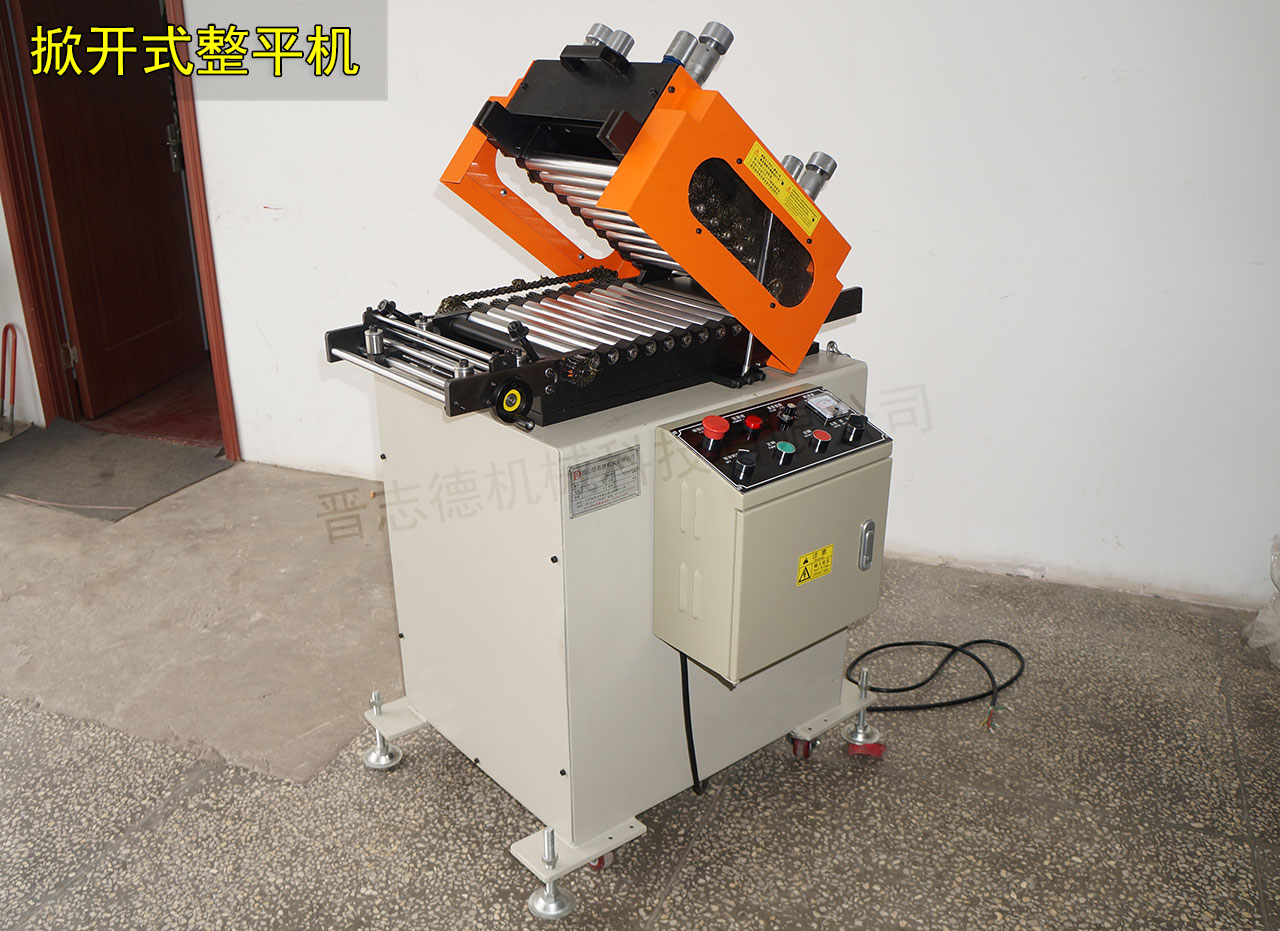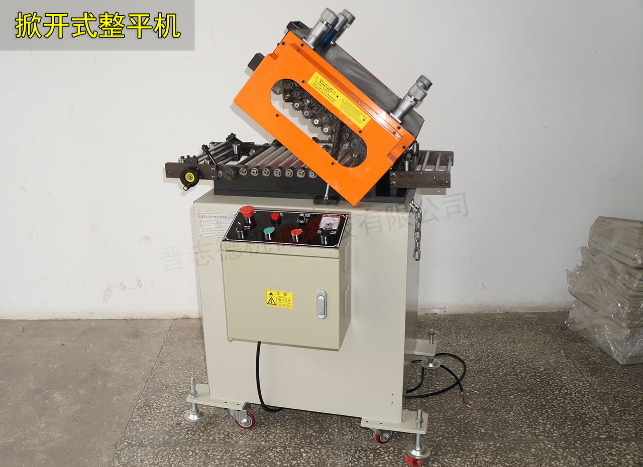 整平機是采用上下滾筒對壓實現材料矯直的自動化設備,而要想確保整平效果,滾筒的潔凈是必不可少的,然而在實際使用中,難免會有油污、碎屑、雜物等進入整平組件中,此時若不進行清理不僅會影響到實際整平效果,而且很容易劃傷滾筒,影響機臺的使用壽命。只是普通整平機都采用的是固定式結構,即裝配完成后上、下滾輪組的間隙就是固定距離的,不可以真正脫離出,無法進行清潔,若實際需要保養(yǎng)維護則需要對整個機頭進行拆卸,不僅花費時間很長會影響到實際生產,而且這種保養(yǎng)、維護必須由專業(yè)技術人員來進行,這無疑大了增加了使用成本。